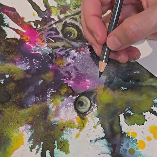 Bring the beauty of the wild into your space with "Leopard in Green." This artwork captures the striking reflective fur and expressive eyes of a leopard, crafted with watercolour paints, inks, and coloured pencils on high-quality Fabriano paper. It’s a perfect addition for nature lovers and art enthusiasts alike.
