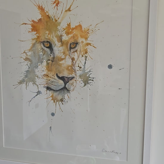 This painting of a lion originated from some splashes of paint on the paper. I had no prior idea of what it was going to be. The spontaneity and life of this work emerged, because for some reason, everything fitted as though it was meant to be.